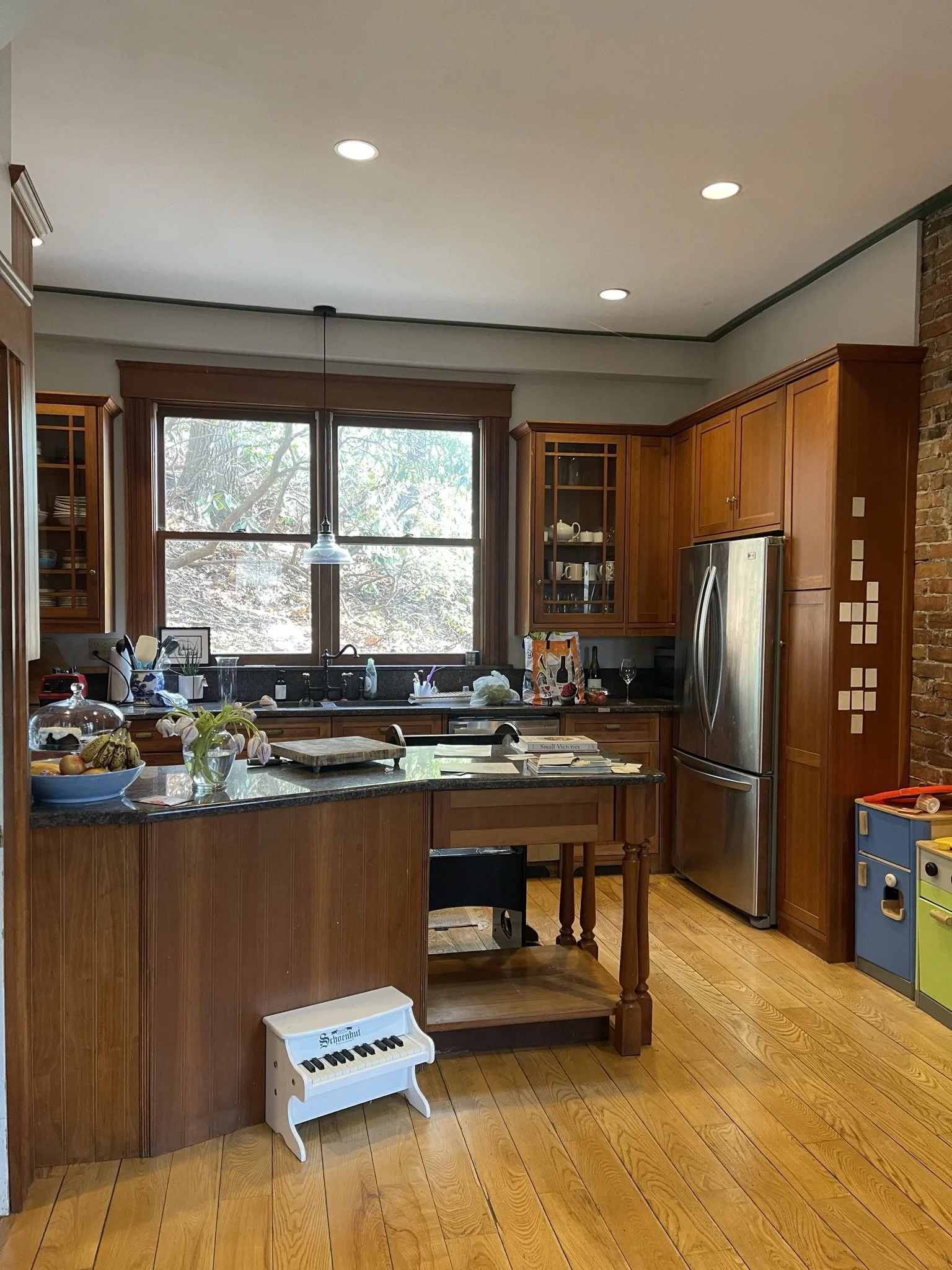 This 1910 Dutch Colonial home was in need of a kitchen remodel and the existing foot print wasn’t enough to achieve the client’s goals. With the intention of preserving the cozy proportions of the adjacent rooms, expanding into the rear yard captured the square footage necessary and created opportunities for better access to natural light via skylights and an eastern facing sliding door.