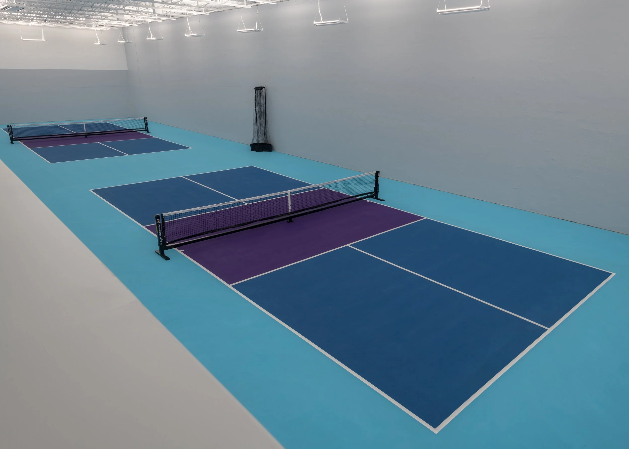 Two pickleball courts take the place of racquetball. This athletic facility is staying up to date with current demands for this growing sport.