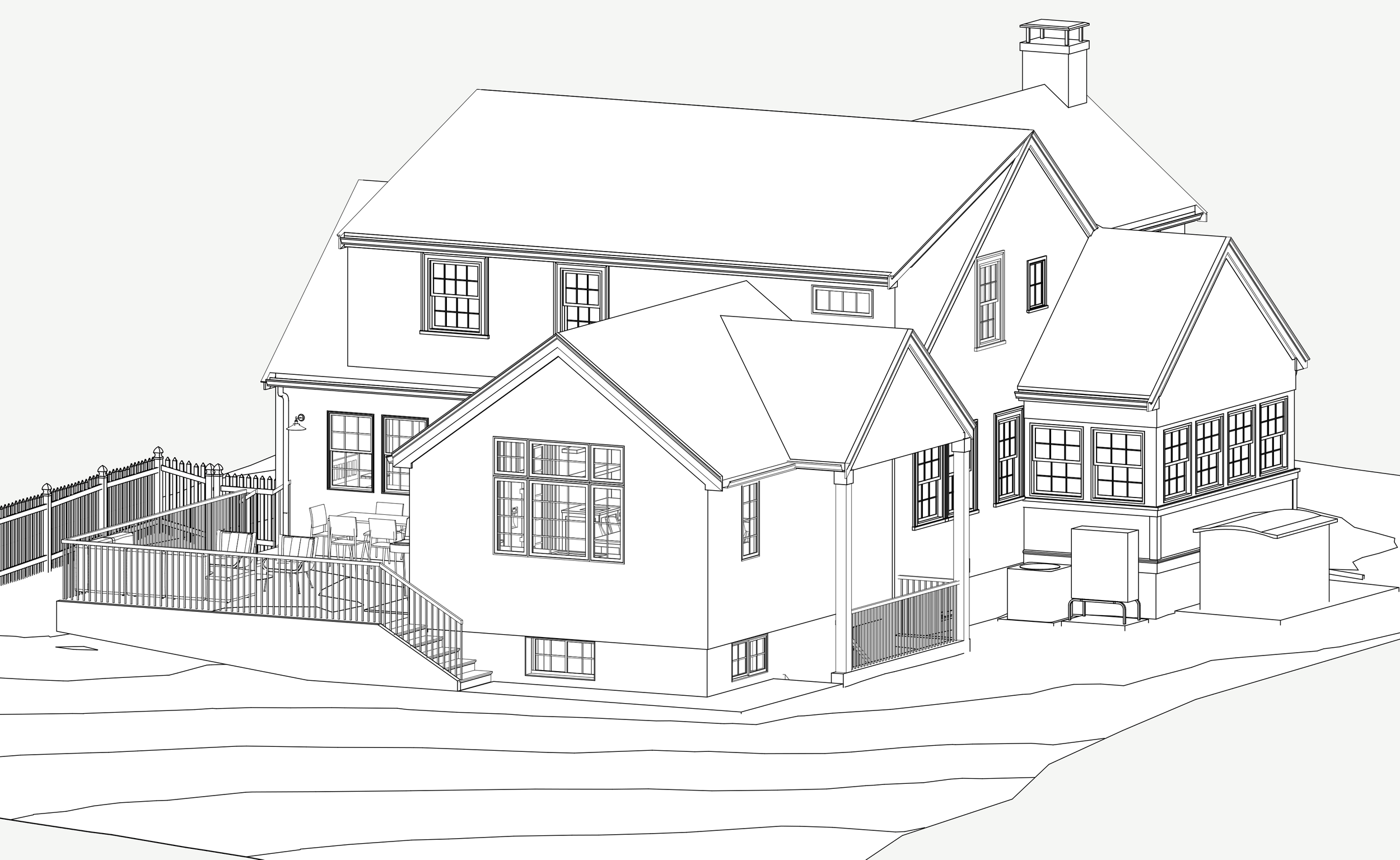 Kitchen Addition with Basement Stair Walk-Out View fullsize A large kitchen addition off the rear of a home requires careful integration with the existing architecture. Our intention is to balance the home’s geometries, not make this space look like an after-thought.(Final Photos Coming Soon) View fullsize View fullsize View fullsize See More Projects