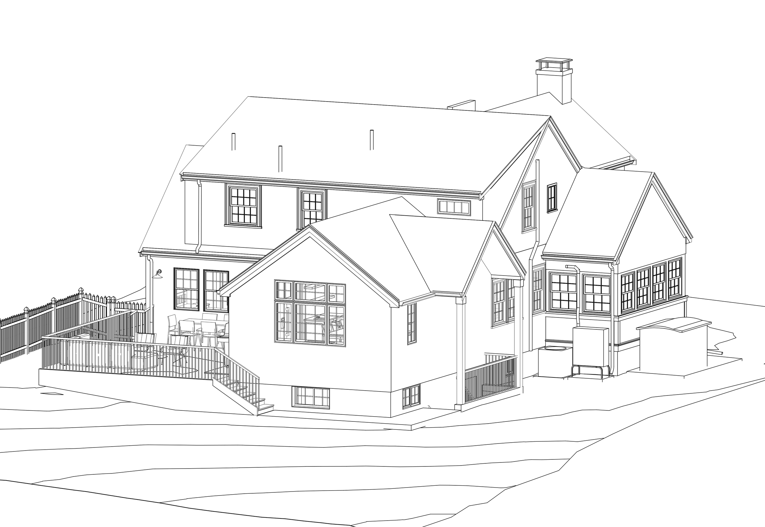 A large kitchen addition off the rear of a home requires careful integration with the existing architecture. Our intention is to balance the home’s geometries, not make this space look like an after-thought.