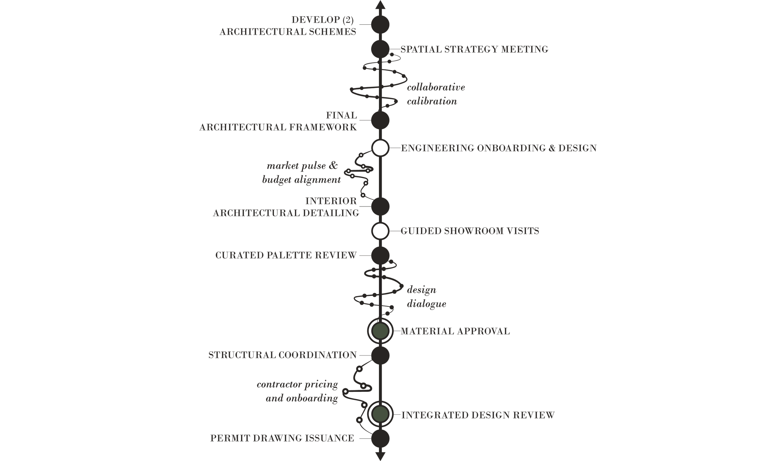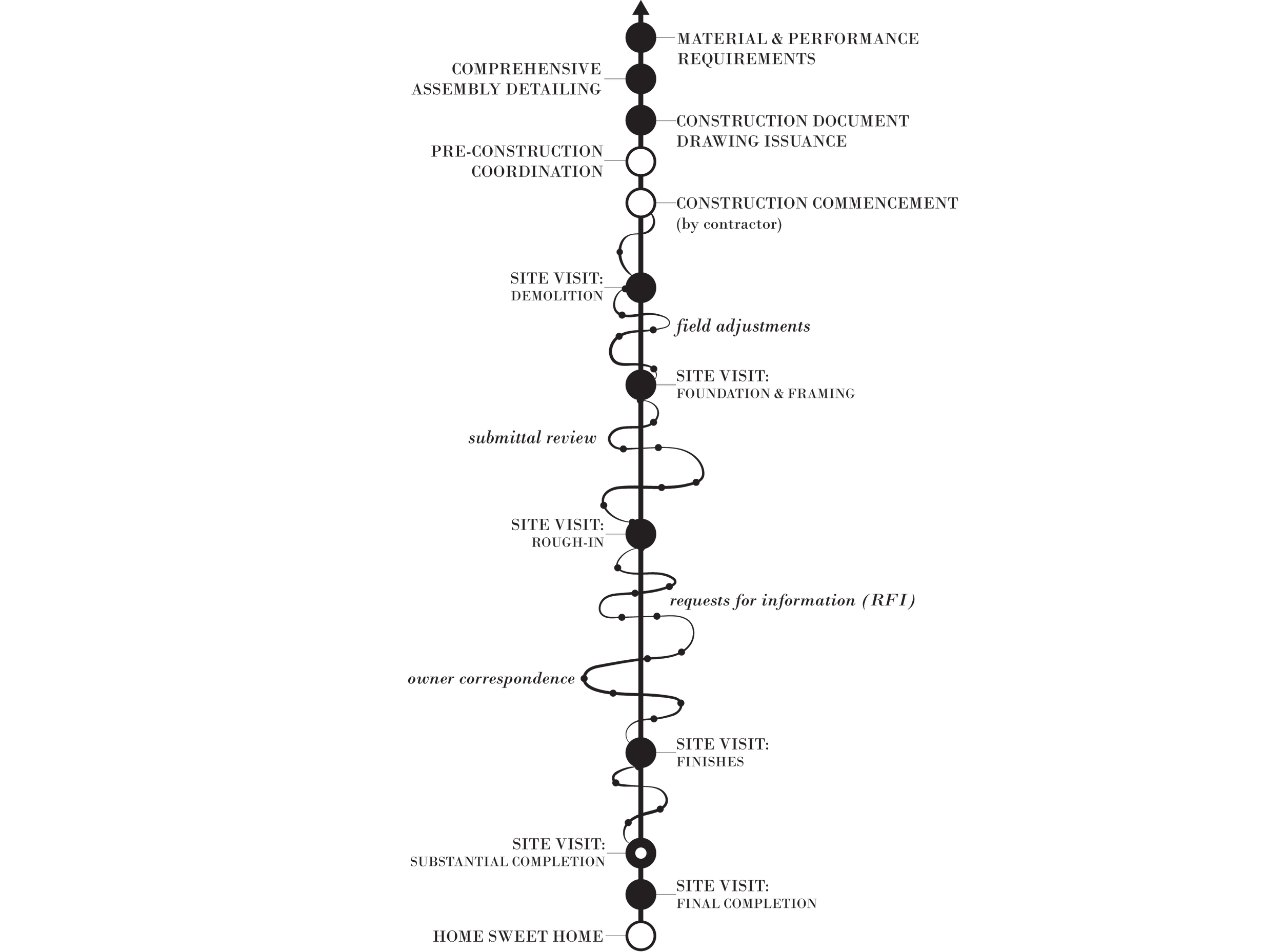 You can think of us as the catalyst in your design project, taking two independent variables and fusing them together. We see the potential within the existing building while recognizing that your home is meant to support the beauty and complexity of your everyday life. This phase focuses on getting to know you through a design experience tailored to your needs. We refine the vision through materiality and engineering, providing the realistic preparation necessary for effective budgeting conversations with contractors.